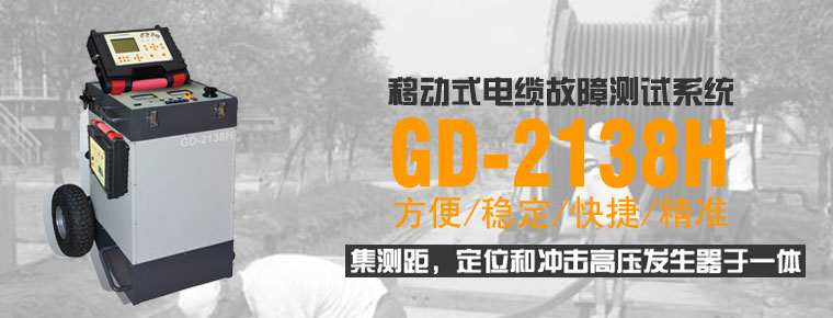 GD2138H移动式电缆故障测试系统是集测距、寻迹、定位和冲击高压发生器于 一体,便于移动、运输及现场测试的综合电缆故障定位装置。能对电缆的高阻闪 络故障,高低阻性的接地,短路和电缆的断线,接触不良等故障进行测试,若配 备声测法定点仪,可准确测定故障点的精确位置。用于对各种埋地电缆、架空电 缆、电力电缆、市话电缆、通讯电缆及光缆进行测距、寻迹、埋深探测及故障定 位。